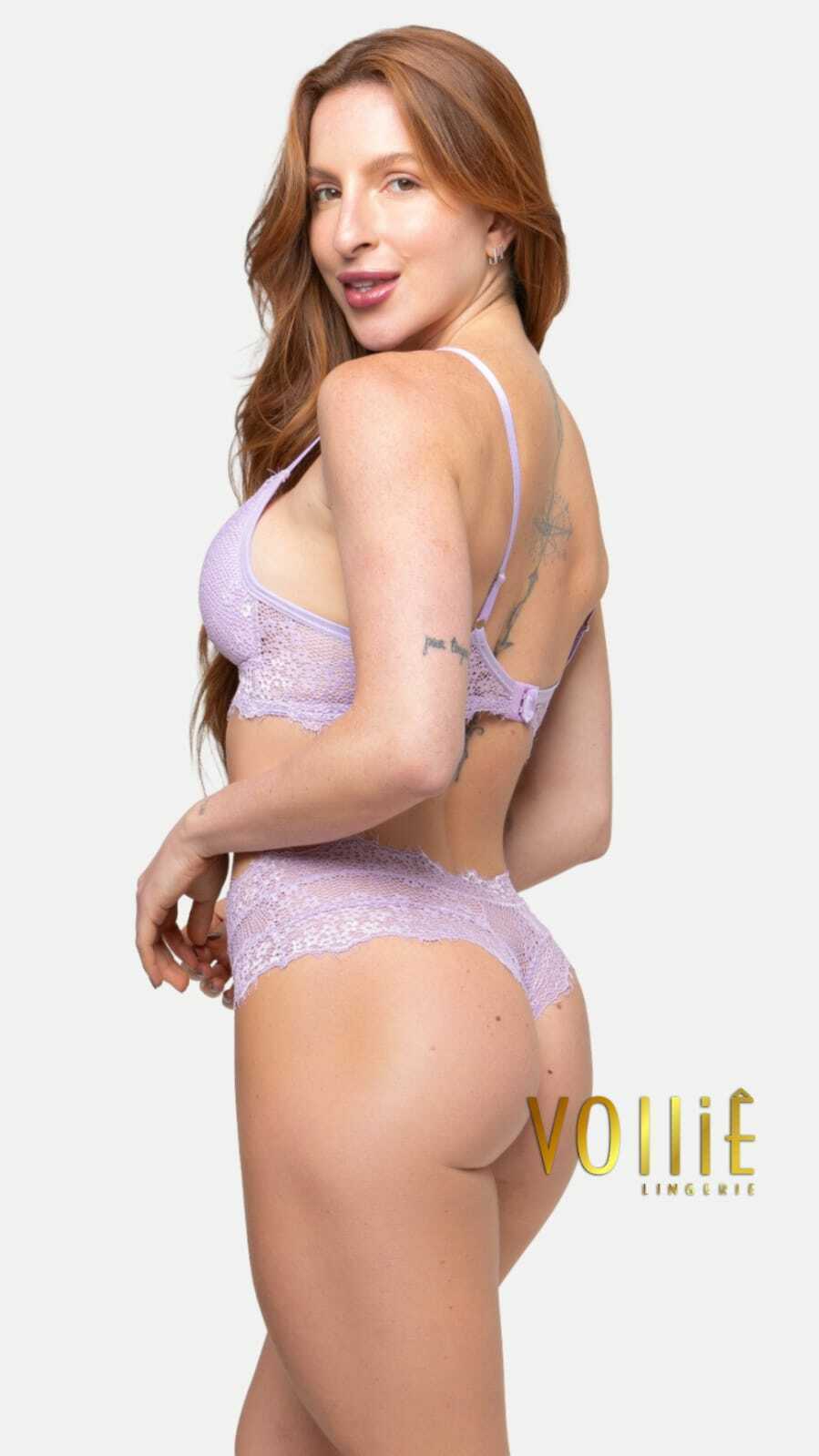 O conjunto Confort  Sedução é feito todo em renda super macia, o sutiã possui bojo soft que é um bojo que pode amassar e que volta toda a sua estrutura, não possui aro o que torna a peça puro conforto.