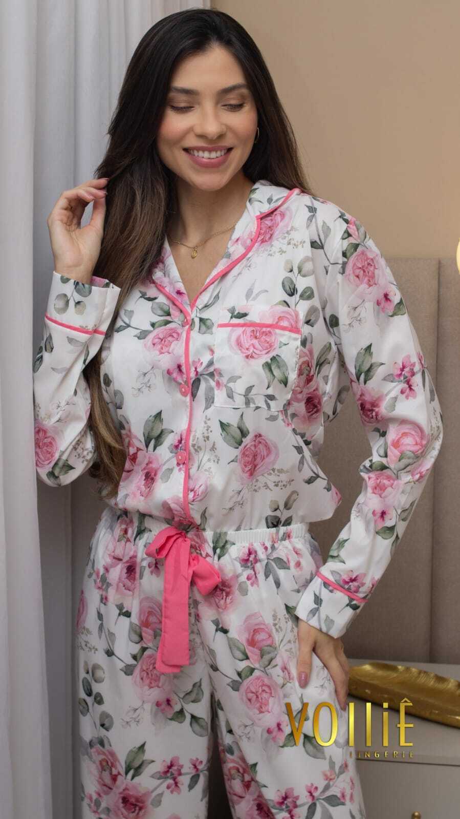 Nova coleção de pijmas americanos em sedinha com estampas exclusivas Volliê para o dia das mães.